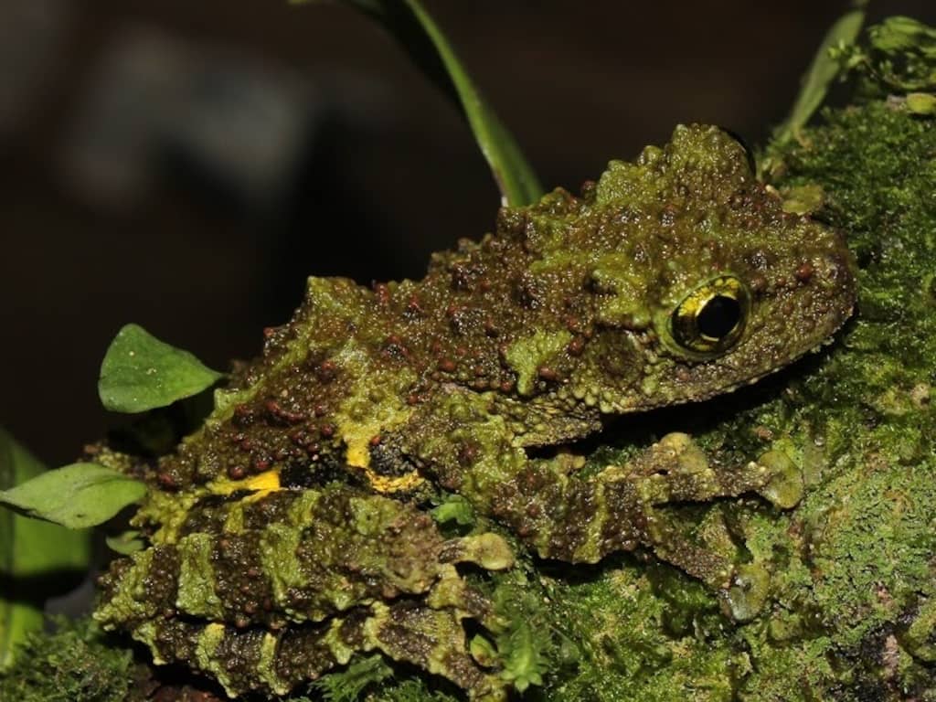 In Vietnam is een mosgroene kikker is ontdekt, die zo goed gecamoufleerd is dat hij bijna volledig opgaat in de omgeving. | Beeld: Wereld Natuur Fonds