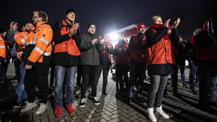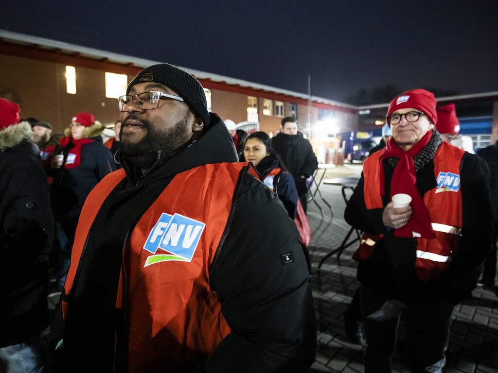 Stakende ambtenaren dinsdagochtend in Almere.Op dezelfde dag is er ook een werkonderbreking in de gemeente Tilburg. Tussen 13.00 en 14.00 uur staken vuilnisophalers, boa's en kantoorpersoneel.