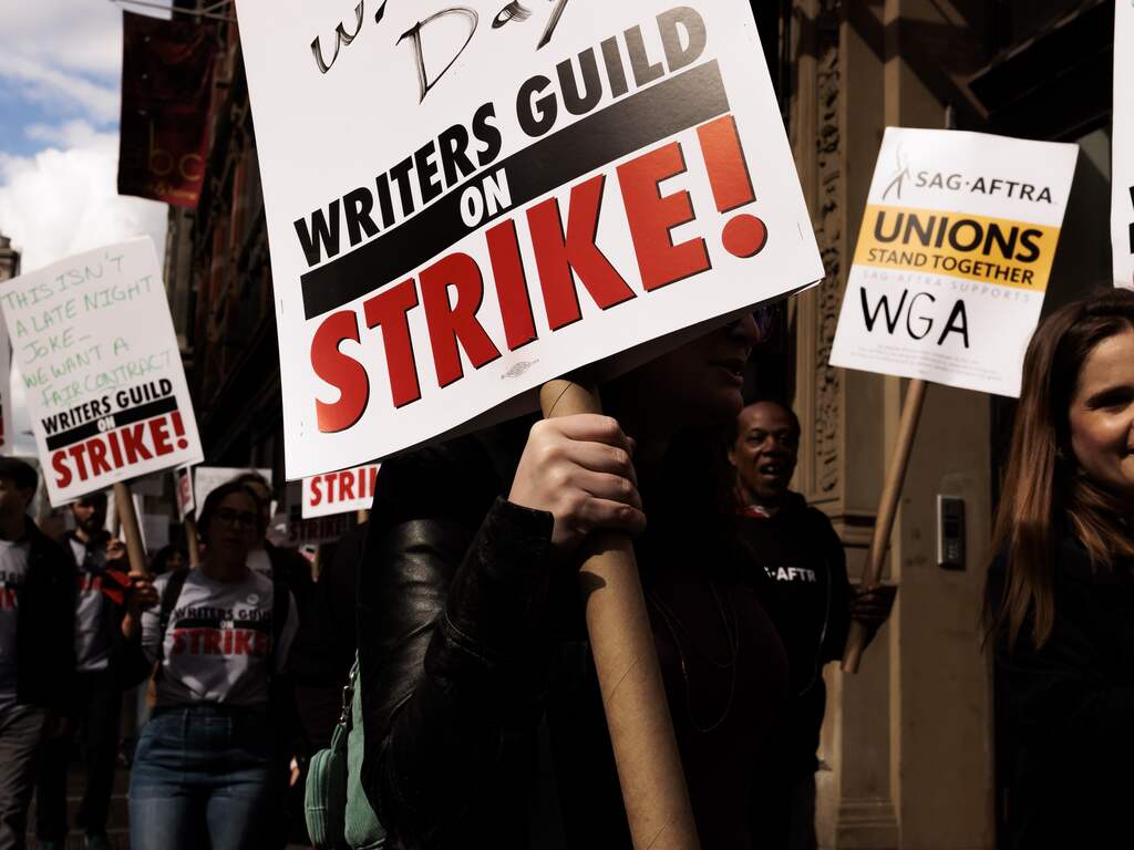 De ruim 11.000 scenarioschrijvers die bij deze organisatie zijn aangesloten, zijn sinds begin mei in staking. Zij eisen onder meer betere beloningen en regels voor het gebruik van kunstmatige intelligentie.