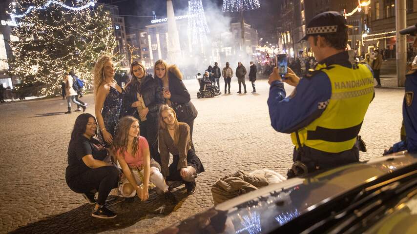 Duizenden mensen kwamen naar de Dam in Amsterdam om de jaarwisseling te vieren. De politie moest een deel van het plein leeg vegen, maar stelde dat de situatie onder controle was.