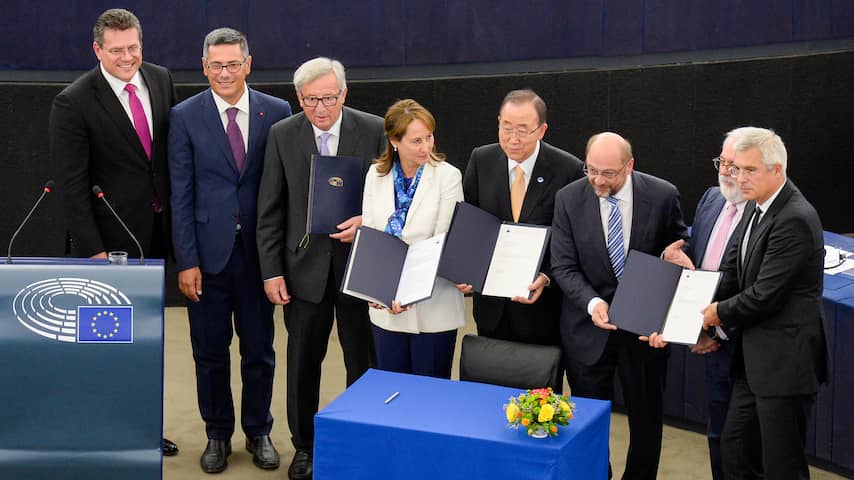Dat gebeurde in recordtijd, nadat in december in Parijs bijna tweehonderd landen overeen waren gekomen om door uitstootreductie de wereldwijde temperatuurstijging tot minder dan 2 graden Celsius te beperken.