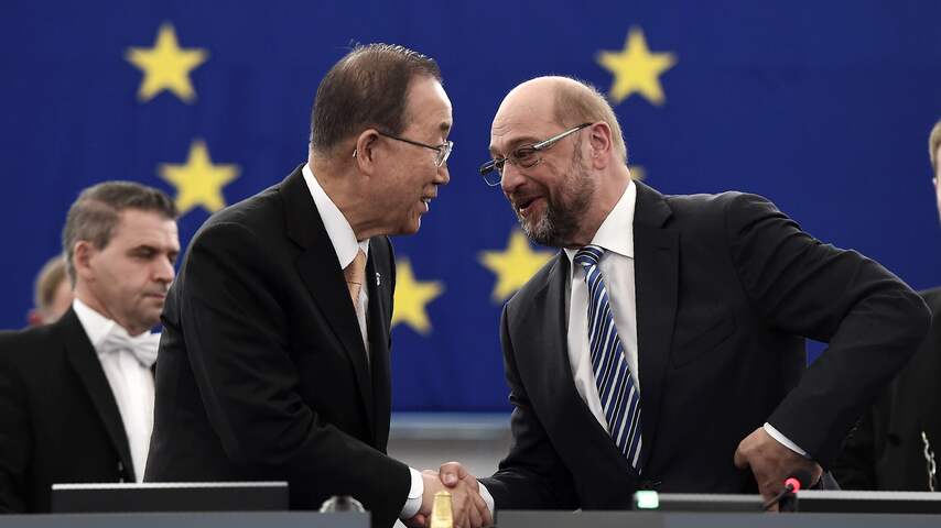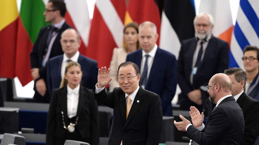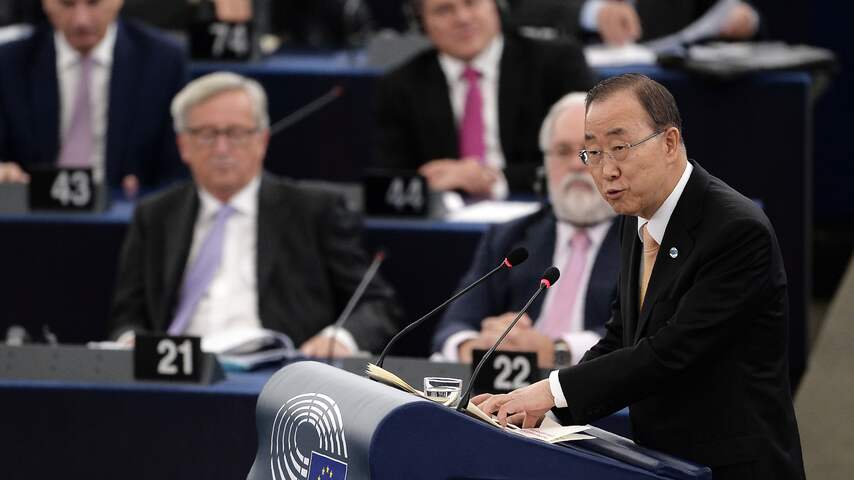 VN-secretaris-generaal Ban Ki-moon, speciaal voor de ratificatieceremonie naar het parlement gekomen, bedankte de EU voor ''het getoonde leiderschap".