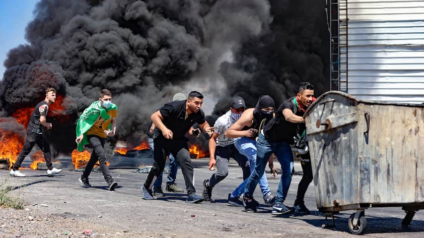 Palestijnse betogers steken autobanden in brand tijdens een confrontatie met Israëlische troepen op de Westelijke Jordaanoever. | Beeld: AFPVraag 4: Hoe ging het deze maand ineens zo mis?