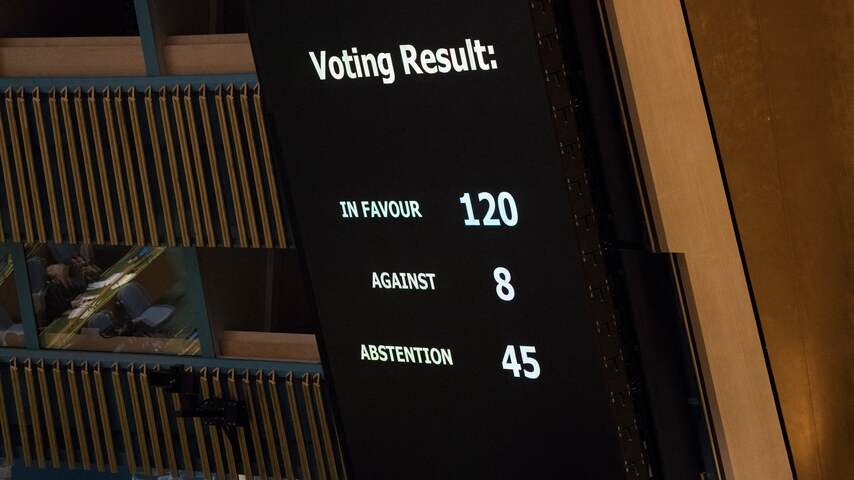 Nederland was een van de 45 landen die zich onthielden van stemming over het staakt-het-vuren in Gaza. | Beeld: AFP'Nederland roept wel alle partijen op tot terughoudendheid'