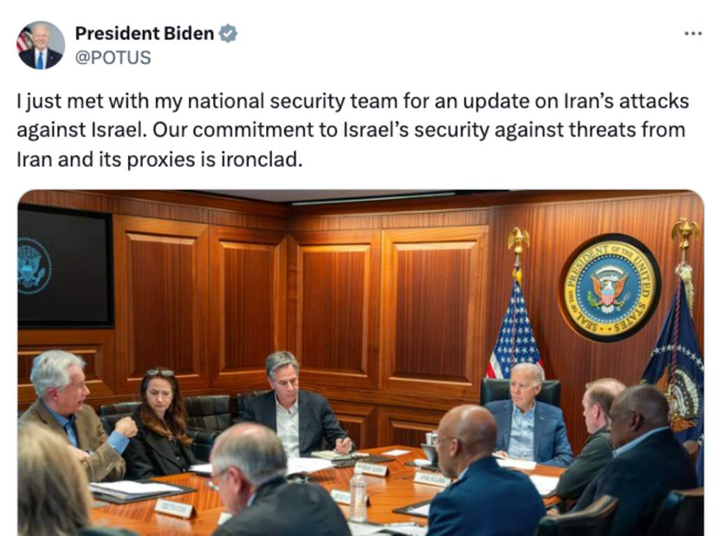 Het Witte Huis bevestigt dat Iran de aanval op Israël heeft geopend. Biden wordt op de hoogte gehouden.