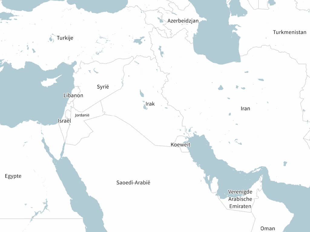 De drones en raketten die Iran heeft afgevuurd richting Israël moeten eerst over Irak en Jordanië vliegen voor ze Israël bereiken. Op dit kaartje is de regio te zien. Veel landen hebben hun luchtruim gesloten.