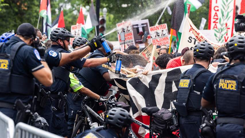 Netanyahu's komst zorgt voor grote demonstraties. | Beeld: ANP/EPAVijf arrestaties in Congreszaal