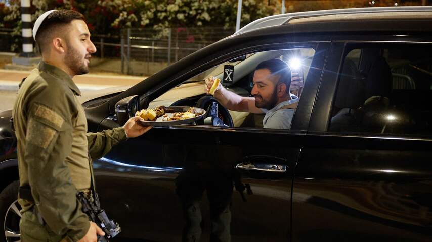 Het Israëlische leger deelt eten uit nadat bekend is geworden dat Hamas-leider Sinwar is omgekomen bij gevechten in Gaza.