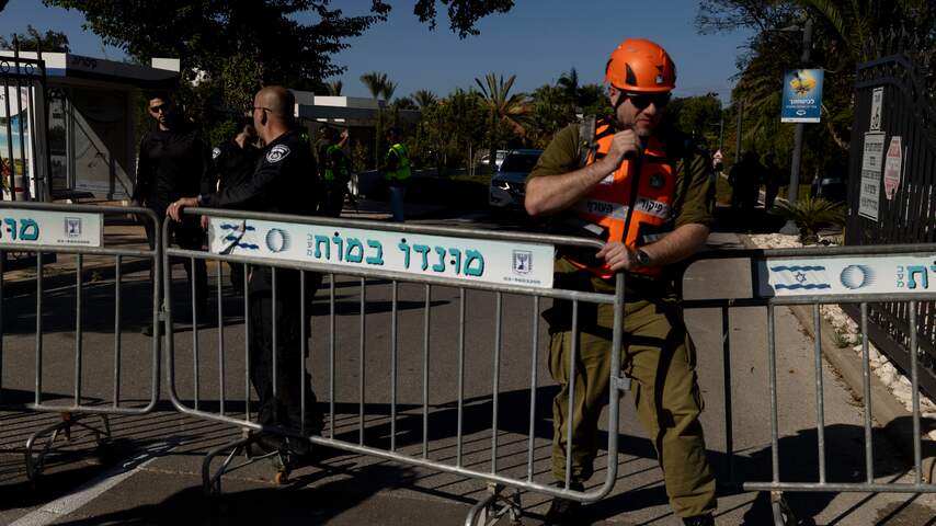Israëlische reddingswerkers en veiligheidsdiensten zetten een deel van Caesarea af. De noordelijke kuststad werd eerder vandaag geraakt door een drone vanuit Libanon. Het doelwit zou een huis van premier Netanyahu zijn geweest.