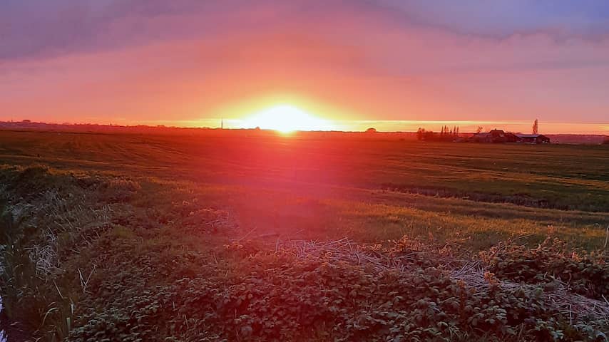 En deze foto is uit Tholen in Zeeland. Volgens Lafeber van Weerplaza zit er vanavond en dinsdagochtend ook nog Saharastof in de lucht. Het kan dus zijn dat we dinsdagochtend nog een mooie zonsopgang zien. Maar het gaat ook regenen, waardoor het stof naar beneden kan komen. | Beeld: Simone Jacobs-Bos