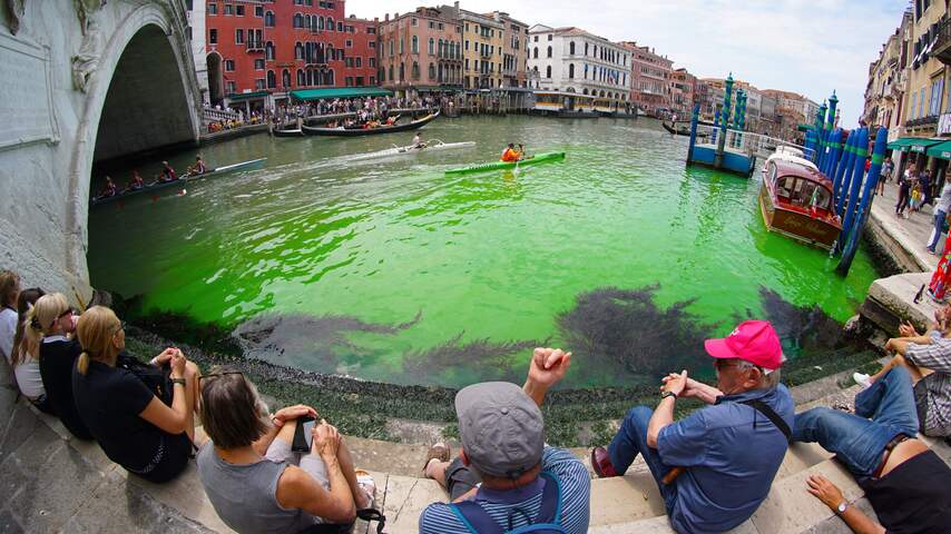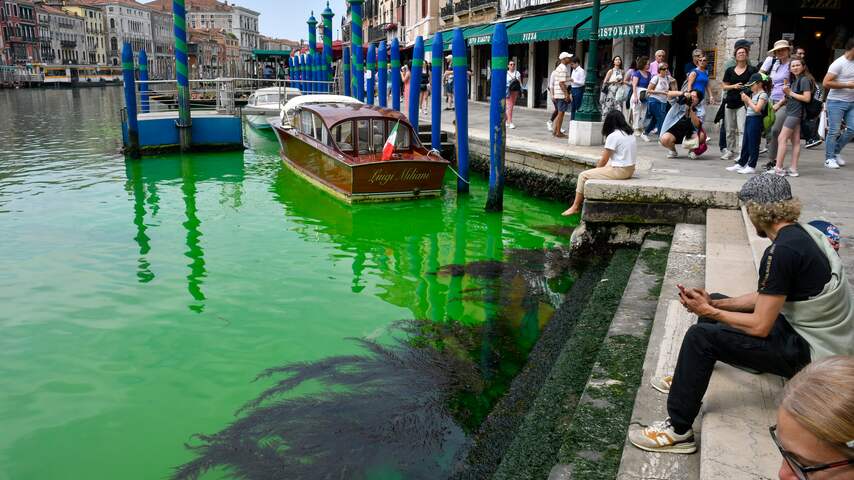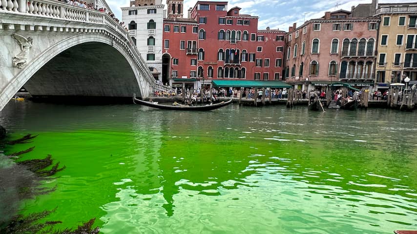 De politie in Venetië heeft een onderzoek ingesteld naar het Canal Grande. Het water in het bekendste kanaal van de Italiaanse stad kleurde zondagochtend felgroen. De oorzaak is nog niet bekend.