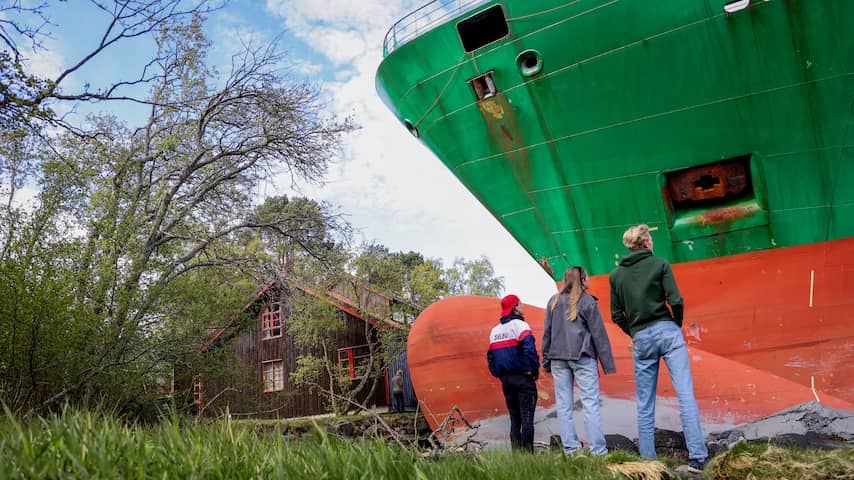 Slapende Noor merkt niet op dat enorm vrachtschip bijna zijn huis ramt
