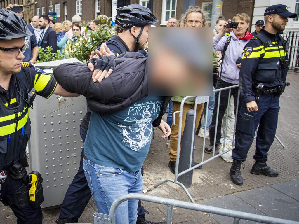 De politie heeft een waterkanon ingezet om de demonstranten te verdrijven. Volgens Omroep West staan meerdere arrestantenbusjes klaar. Vanwege drukte bij de politie worden mensen die zijn opgepakt weer vrijgelaten zodra ze zijn weggebracht.