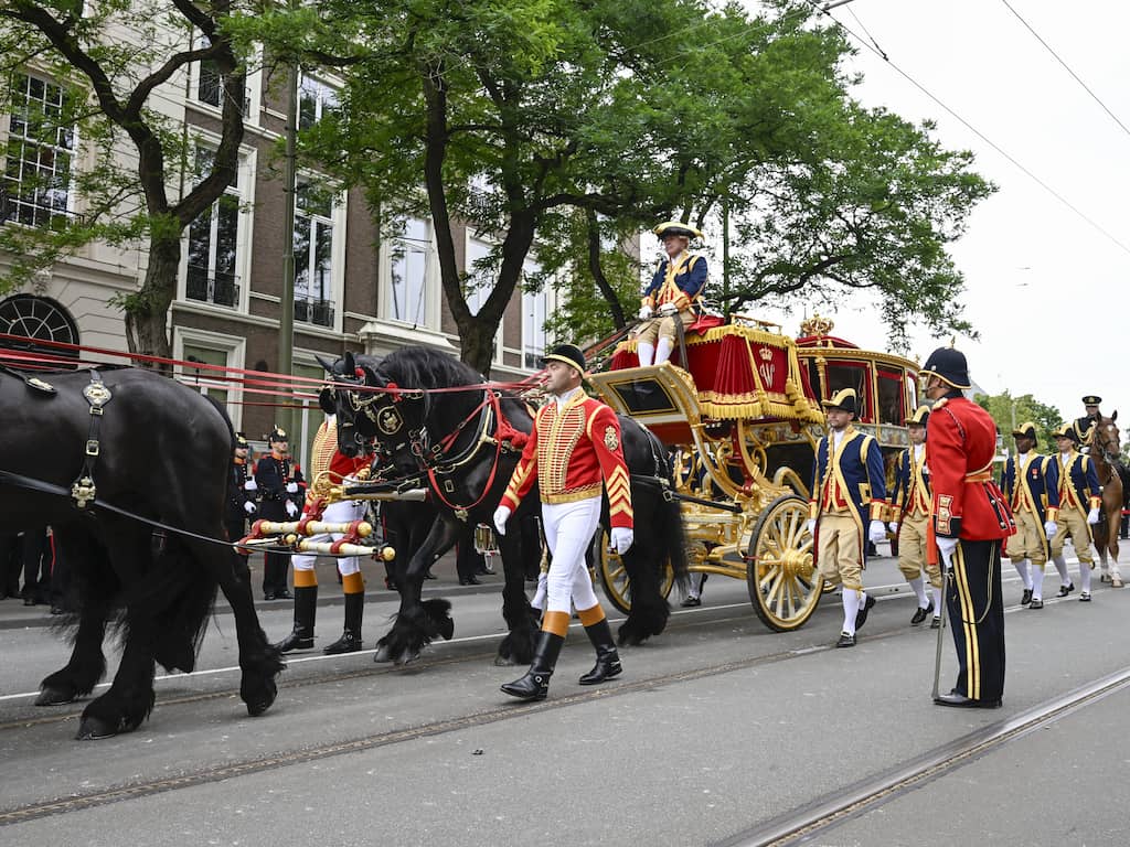 Om 13.00 uur vertrekt van de koninklijke stoet van Paleis Noordeinde naar de Koninklijke Schouwburg.