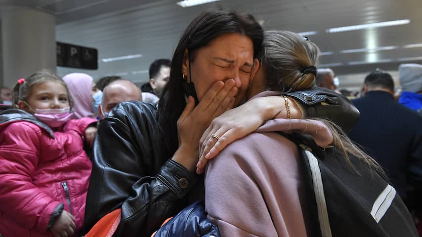 Een Oekraïense vluchteling wordt opgevangen door haar familie in Libanon. | Beeld: Getty Images