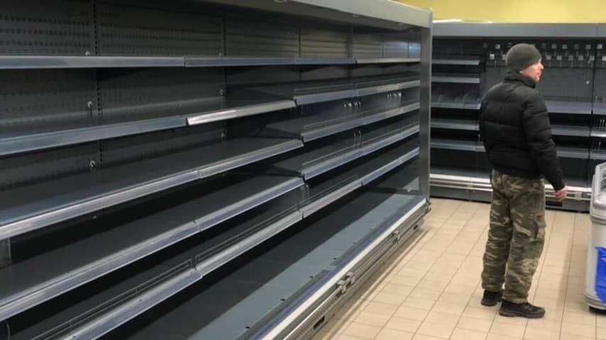 Ook kantoren, overheidsgebouwen en fabrieken zijn dicht, de pinautomaten leeg en de brandstof op. Bussen en treinen rijden niet meer, vertrekken is onmogelijk. Door de erbarmelijke omstandigheden kunnen de mensen niet werken en hebben de meesten dus geen inkomen. "In Oekraïne zijn daar geen speciale potjes voor, zoals in Nederland", zegt John. De weinigen die nog wél wat te besteden hebben, treffen vrijwel lege schappen in de supermarkt.