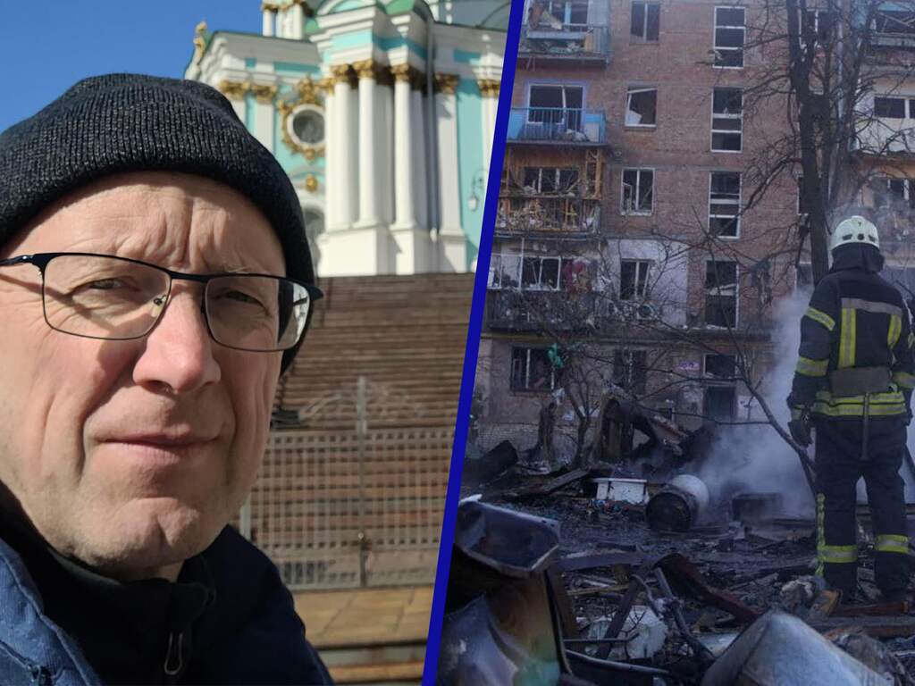 En daarvan klinken er op dit moment heel veel aan de rand van Kyiv. Rond voorstad Irpin, denk ik. En zojuist klonk er een keihard, veel dichterbij. Ik kon de rookwolk zien opstijgen. Ik weet inmiddels dat die harde klap een raket was die net voor een appartementengebouw insloeg. Door de explosie werd de gevel opengereten en werden appartementen verwoest. Er worden één dode en vier gewonden gemeld.