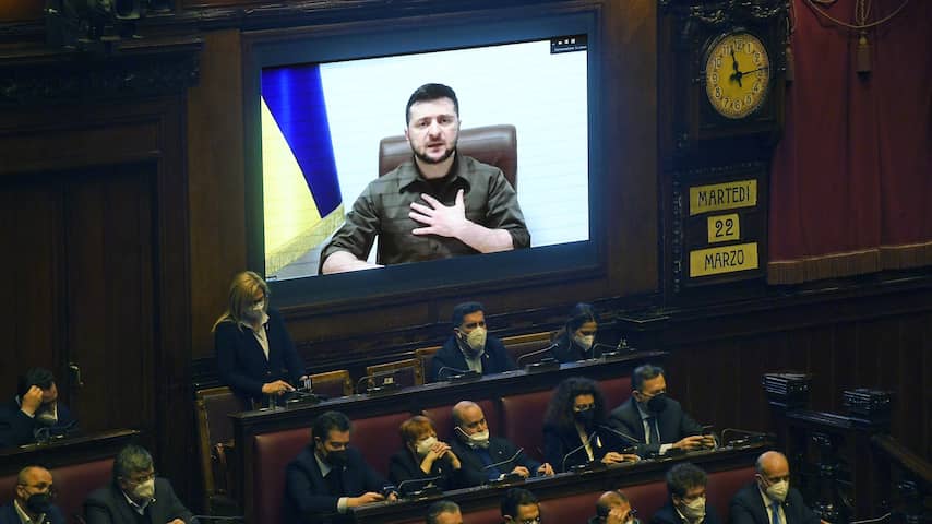 Zelensky spreekt het Italiaans parlement toe. | Beeld: AFPChina is een belangrijke partner voor zowel Rusland als Oekraïne. Voorlopig stelt het land zich neutraal op, ondanks aandringen van westerse landen om de oorlog in Oekraïne te veroordelen. "We vinden dat China op de voorgrond moet treden en een belangrijke bijdrage moet leveren voor vrede. We willen ook dat het land een rol gaat spelen in een nieuwe veiligheidssysteem, dat oorlogen als dit in de toekomst zou moeten voorkomen", aldus senior-regeringsadviseur Andriy Yermak.