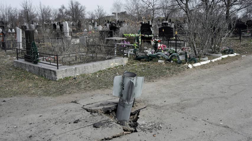 Het overblijfsel van wat een clusterbom zou moeten zijn. | Beeld: AFPZelensky verbood zondag elf pro-Russische oppositiepartijen, waaronder die van een belangrijke rivaal. Bovendien gaf hij opdracht alle landelijke tv-zenders gelijk te schakelen met de staatstelevisie. Rusland reageerde cynisch op deze acties en het kwam Zelensky ook in het Westen op kritiek te staan.
