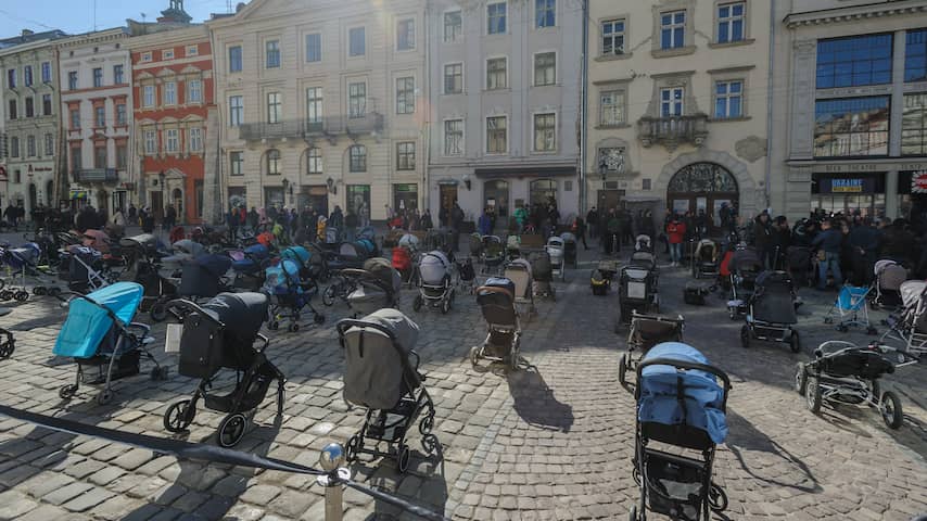 109 lege kinderwagens in Lviv. | Beeld: Getty ImagesDe stad barst uit zijn voegen door vluchtelingenstroom