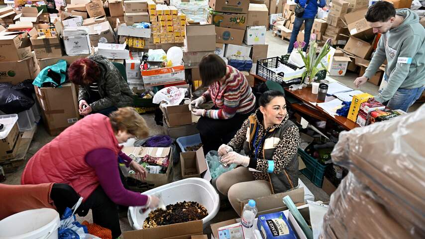 Vrijwilligers in een hulpdistributiecentrum in Lviv. | Beeld: Getty ImagesNoodhulp vraagt miljoen dollar per dag