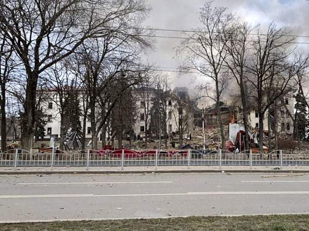 Het theater werd vorige week woensdag gebombardeerd. In de schuilkelder die zich onder het theater bevindt, verbleven op dat moment naar verluidt meer dan duizend mensen.
