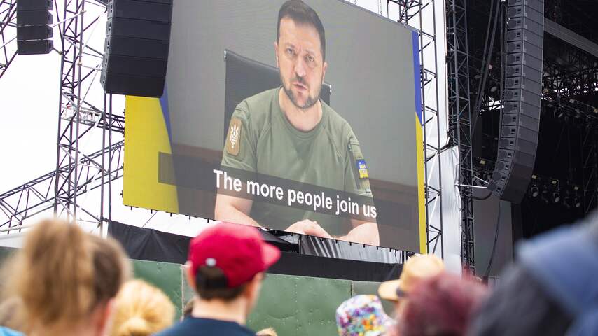 Ook vroeg Zelensky de festivalgangers om gevluchte Oekraïners te helpen. "Zet alle politici die je kent onder druk om te helpen de vrede in Oekraïne te herstellen."