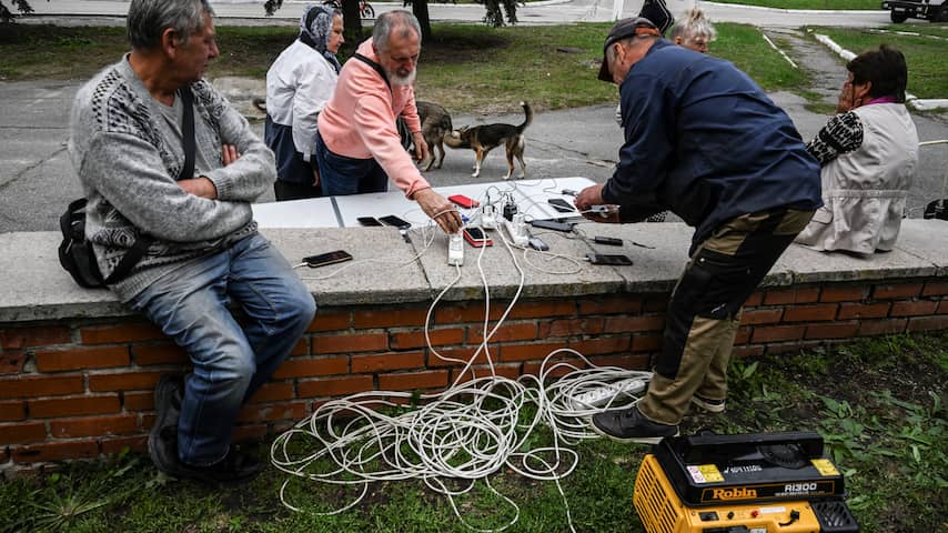 Oekraïners proberen hun telefoon op te laden. | Beeld: AFPBiden tegen Poetin: 'Gebruik geen kernwapens'