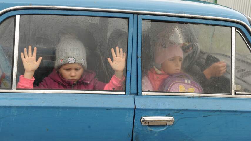 Oekraïense vluchtelingen in een auto op weg naar een tijdelijk kamp in Belgorod. | Beeld: AFP'Rusland richt zich na verliezen op Oekraïense burgers'