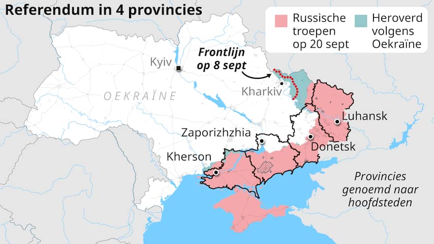 Rusland wil de referenda gebruiken om aan te tonen dat de bezette gebieden geen Oekraïens maar Russisch grondgebied zijn. Als de Oekraïense tegenaanval verder doorstoot naar het oosten, kan de Russische president Vladimir Poetin claimen dat het een aanval is op Russisch grondgebied. Dat is belangrijk, omdat hij dan volgens de Russische wet meer en zwaardere middelen mag inzetten.