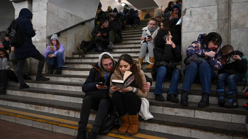 Mensen schuilen in een metrostation in Kyiv voor de raketaanvallen. | Beeld: ReutersRaketresten gevonden in Moldavië