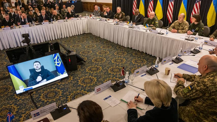 "Dit is een beslissend moment", aldus de Amerikaanse minister van Defensie Lloyd Austin tijdens de bijeenkomst. "Het Oekraïense volk kijkt naar ons. Het Kremlin kijkt naar ons. En de geschiedenis kijkt naar ons. Dus dit is niet het moment om in te binden."