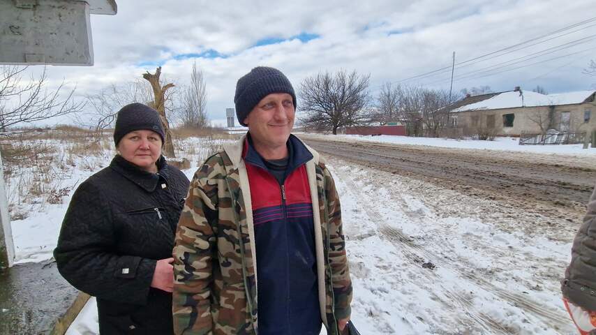 Bij een bushalte treffen we een paar inwoners die zich verzamelen naast een busje: een rijdende winkel met levensmiddelen. "Kom je uit Nederland?", vraagt Vitali. "Waarom leren ze jullie daar geen Russisch?" En hij heeft meer op te merken. "Ik begrijp niks van de politiek. Iedereen wil vrede, maar waarom sturen ze hier steeds meer wapens heen? Als jullie willen dat de oorlog stopt, steek je neus niet in onze zaken. Stuur hier geen wapens naartoe." Een vrouw zonder gebit vult aan. "Kijk ze hebben hier om ons heen allemaal loopgraven gemaakt, vlak bij onze huizen."