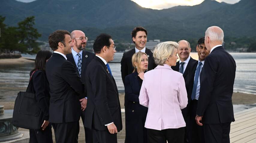 G7-leiders in Hiroshima.Zelensky roept Arabische Liga op zich achter Oekraïne te scharen