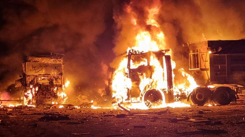 Bij de Russische droneaanval vlogen meerdere voertuigen in brand. Auto's en infrastructuur zijn verwoest. | Beeld: AFPOekraïens energienetwerk gerepareerd en klaar voor de winter
