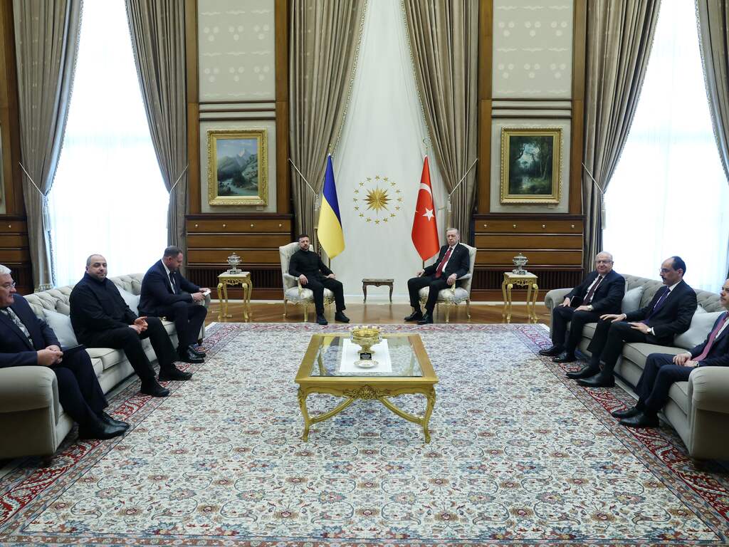 De ontmoeting Tussen Zelensky en Erdogan in Ankara is afgelopen, meldt het Turkse persbureau Anadolu. De twee presidenten hebben nog geen verklaringen gegeven na de bijeenkomst.