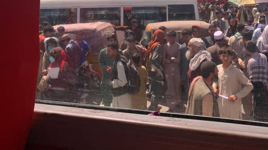 Kinderen en vrouwen begonnen te huilen, werden misselijk. De deuren hebben we uiteindelijk maar opengezet, maar daar moesten dan wel twee mannen bij gaan staan om te voorkomen dat mensen die buiten op straat liepen de bus insprongen, ze wilden allemaal naar het vliegveld. We zagen hoe de Taliban-strijders op straat mensen sloegen met rubberen slangen, mannen kregen klappen met de achterkant van een kalasjnikov.