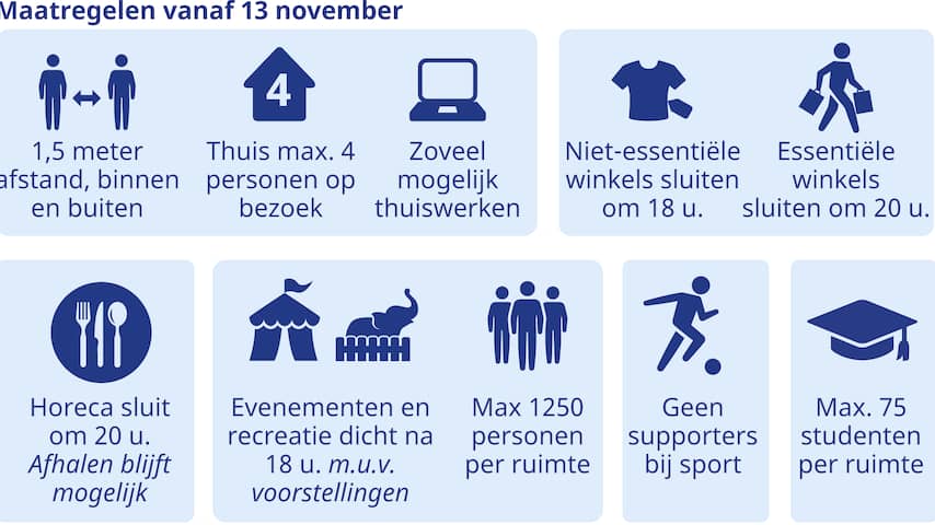 Een overzicht van de maatregelen die vanaf 13 november gelden. | Beeld: Bart-Jan Dekker