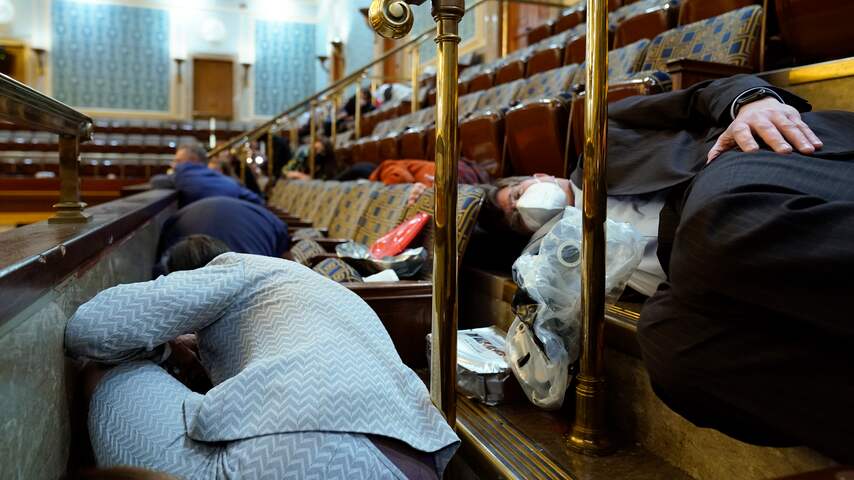 Congresleden die in het Huis van Afgevaardigden aanwezig waren zoeken dekking. | Beeld: ANP