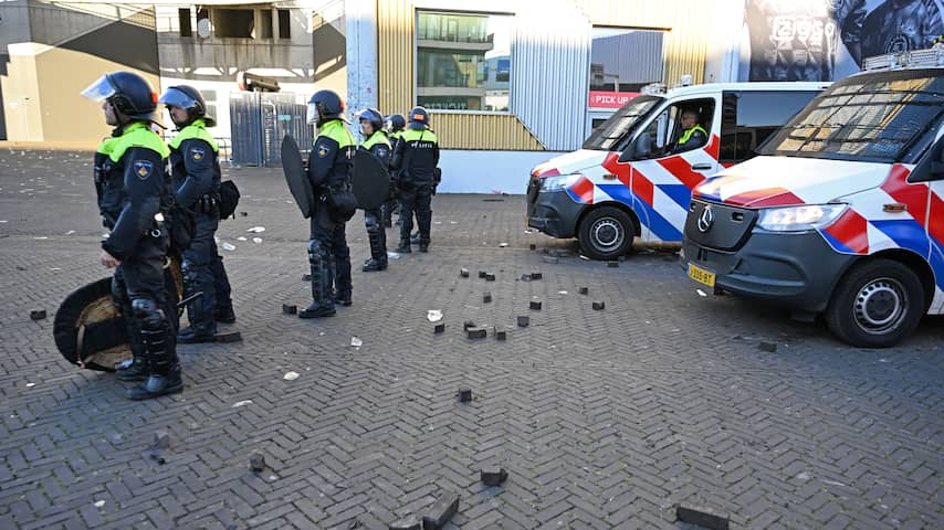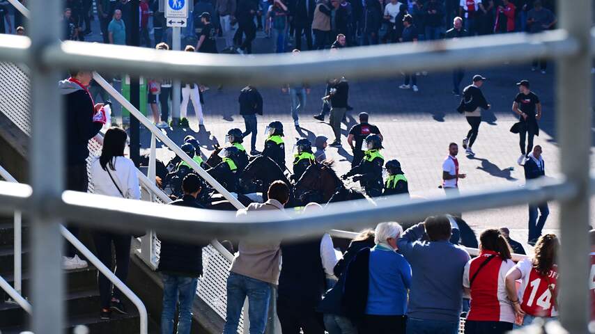 De Klassieker tussen Ajax en Feyenoord werd zondag in de tweede helft bij een 0-3-stand gestaakt wegens vuurwerk op het veld. Daarna liep het ook buiten de Johan Cruijff ArenA flink uit de hand.