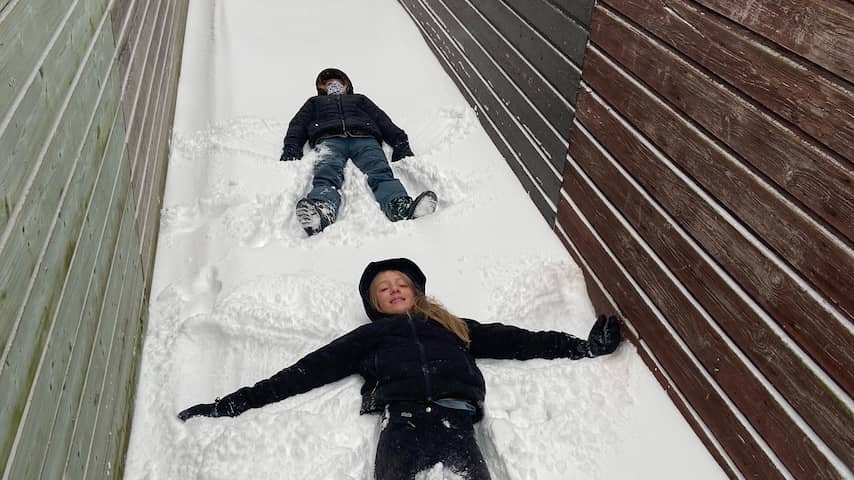 De dochters van Anna van den Brink maakten sneeuwengelen in Bemmel. | Beeld: Anna van den Brink
