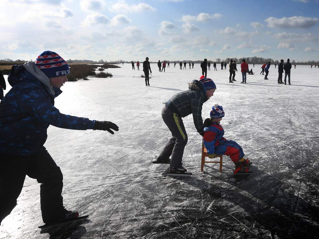 Schaatsliefhebbers zoeken in groten getale het ijs op nu de verwachting is dat het vanaf maandag gedaan lijkt met het winterweer. Zaterdag en zondag is het nog winters koud en prima schaatsweer.
